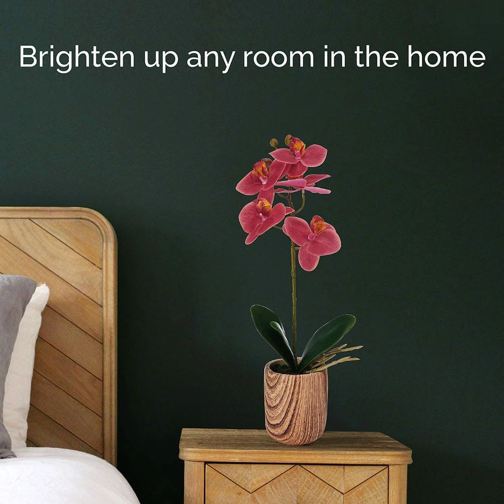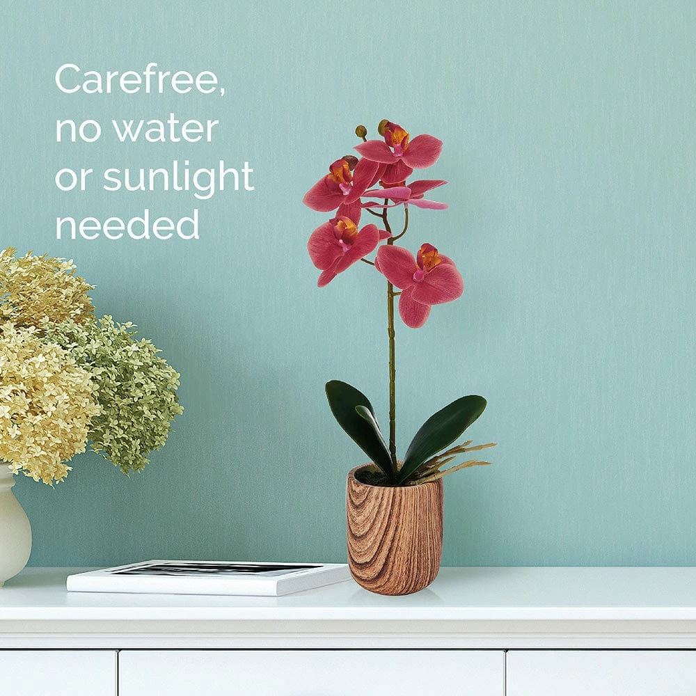 This Orchid Artificial Greenery by Mikasa is a charming display piece that features lifelike orchids in a decorative pot. Made from high-quality plastic materials, these flowers will amaze your guests with their lifelike touch and feel. Artificial florals are the perfect, low-maintenance solution to bringing the beauty of fresh flowers into your home — no sunlight or watering required. Realistic faux flowers create a relaxing, welcoming atmosphere and brighten any office, bedroom, bathroom, kitchen, balcony, living room, apartment, café, or classroom. These elegant decorations also make a great gift. Stems feature a hidden wire for bending orchids into a unique shape. FLOWER & POT SIZE: Flower measures 5.12×3.54×16.14; pot measures 3.25×4.125 inches.