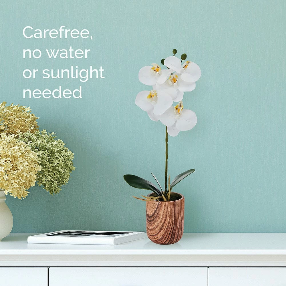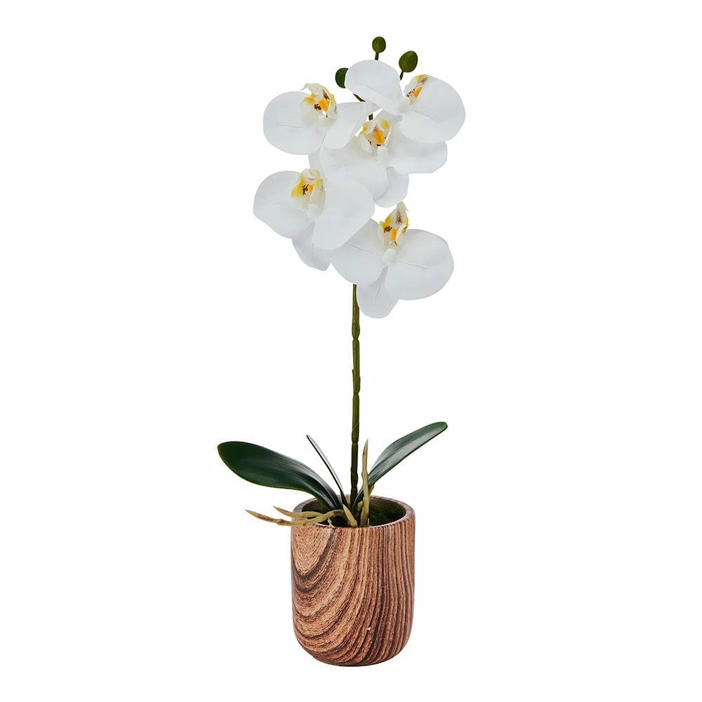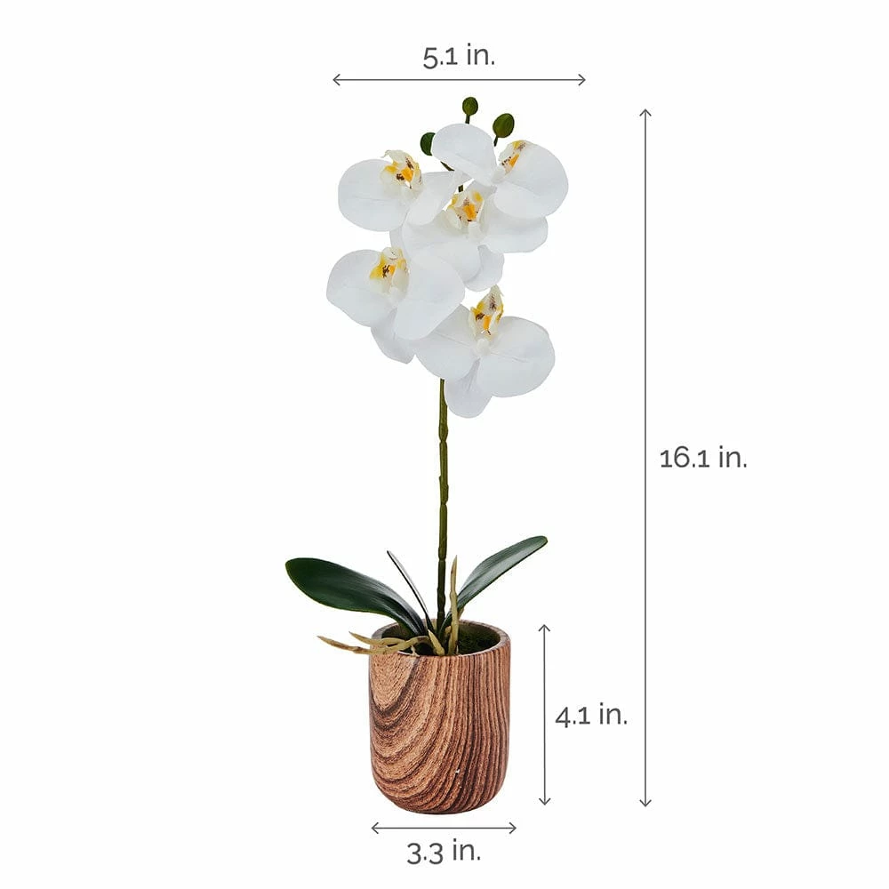 This Orchid Artificial Greenery by Mikasa is a charming display piece that features lifelike orchids in a decorative pot. Made from high-quality plastic materials, these flowers will amaze your guests with their lifelike touch and feel. Artificial florals are the perfect, low-maintenance solution to bringing the beauty of fresh flowers into your home — no sunlight or watering required. Realistic faux flowers create a relaxing, welcoming atmosphere and brighten any office, bedroom, bathroom, kitchen, balcony, living room, apartment, café, or classroom. These elegant decorations also make a great gift. Stems feature a hidden wire for bending orchids into a unique shape. FLOWER & POT SIZE: Flower measures 5.12×3.54×16.14; pot measures 3.25×4.125 inches.