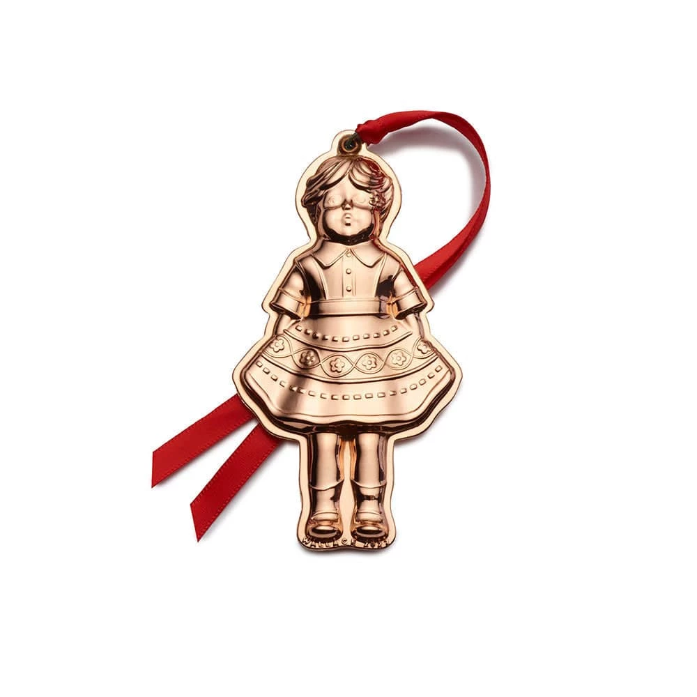 This Wallace 2022 Copper Christmas Series Vintage Toys Doll Ornament is the 4th edition in this collectible series. Features an adorable old fashioned baby doll that will add brightness and a beautiful touch of joy to a holiday package, tree or mantel.