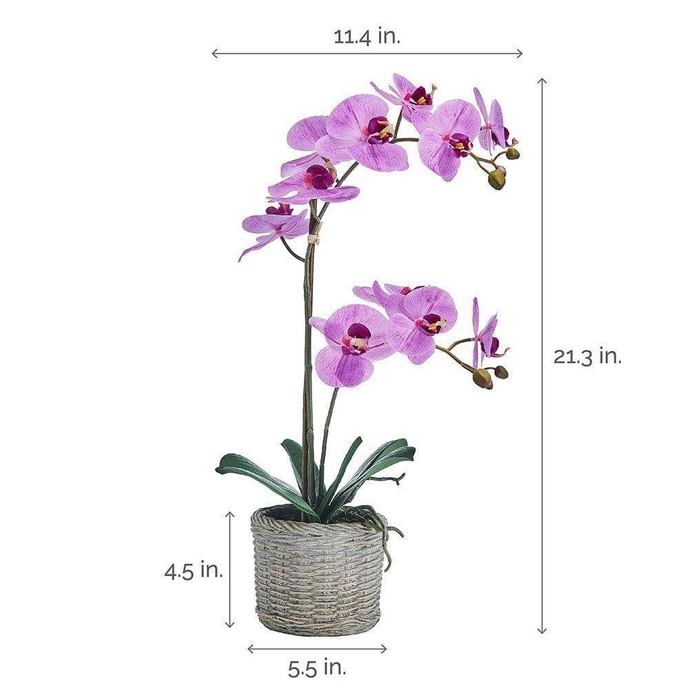This Orchid Artificial Greenery by Mikasa is a charming display piece that features lifelike orchids in a decorative pot. Made from high-quality plastic materials, these flowers will amaze your guests with their lifelike touch and feel. Artificial florals are the perfect, low-maintenance solution to bringing the beauty of fresh flowers into your home — no sunlight or watering required. Realistic faux flowers create a relaxing, welcoming atmosphere and brighten any office, bedroom, bathroom, kitchen, balcony, living room, apartment, café, or classroom. These elegant decorations also make a great gift. Stems feature a hidden wire for bending orchids into a unique shape. FLOWER & POT SIZE: Flower measures 11.42×6.69×21.26; pot measures 5.5×4.5 inches.