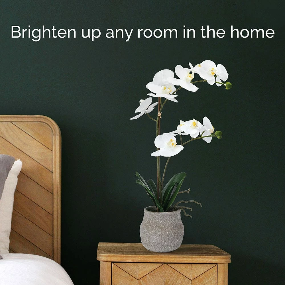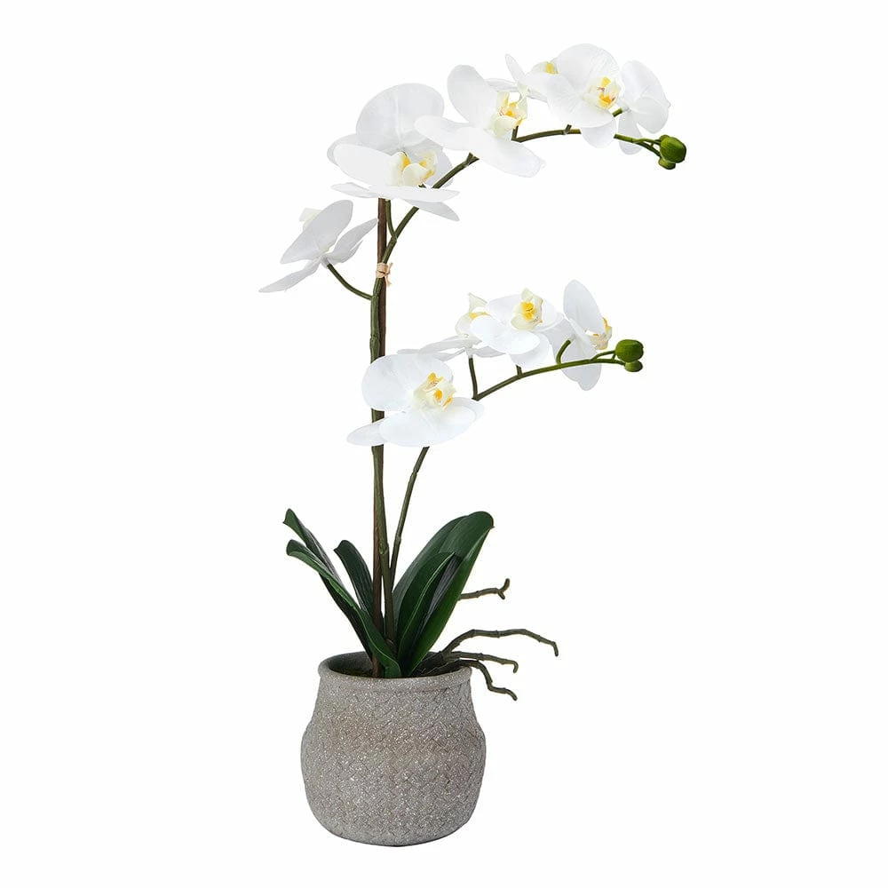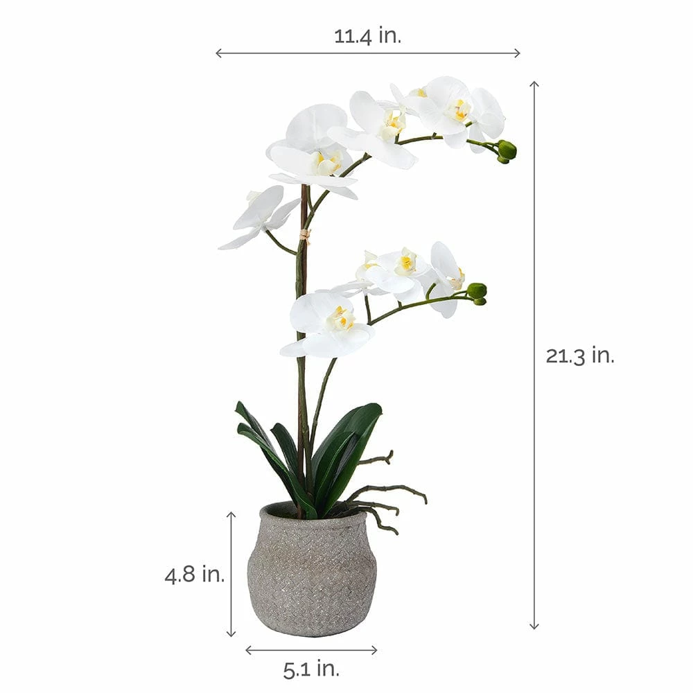 This Orchid Artificial Greenery by Mikasa is a charming display piece that features lifelike orchids in a decorative pot. Made from high-quality plastic materials, these flowers will amaze your guests with their lifelike touch and feel. Artificial florals are the perfect, low-maintenance solution to bringing the beauty of fresh flowers into your home — no sunlight or watering required. Realistic faux flowers create a relaxing, welcoming atmosphere and brighten any office, bedroom, bathroom, kitchen, balcony, living room, apartment, café, or classroom. These elegant decorations also make a great gift. Stems feature a hidden wire for bending orchids into a unique shape. FLOWER & POT SIZE: Flower measures 11.42×6.69×21.26; pot measures 5.125×4.75 inches.
