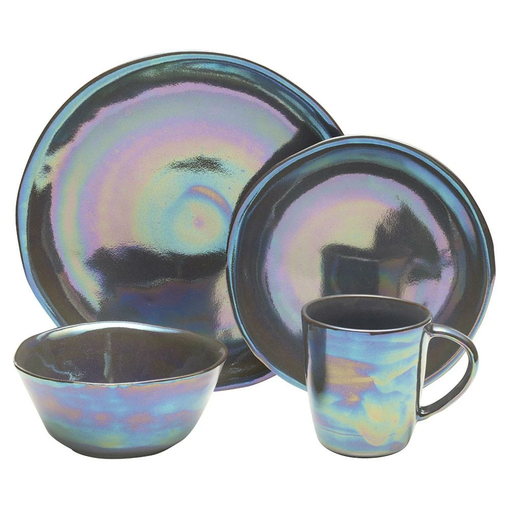 Crafted of terracotta. The type of glaze used will give each piece a unique appearance. 4 piece place setting includes (1) each: 11 inch dinner plate, 8-1/2 inch salad plate, 6-1/4 inch (11 ounce) cereal bowl, and 12 ounce mug. Microwave and dishwasher safe.