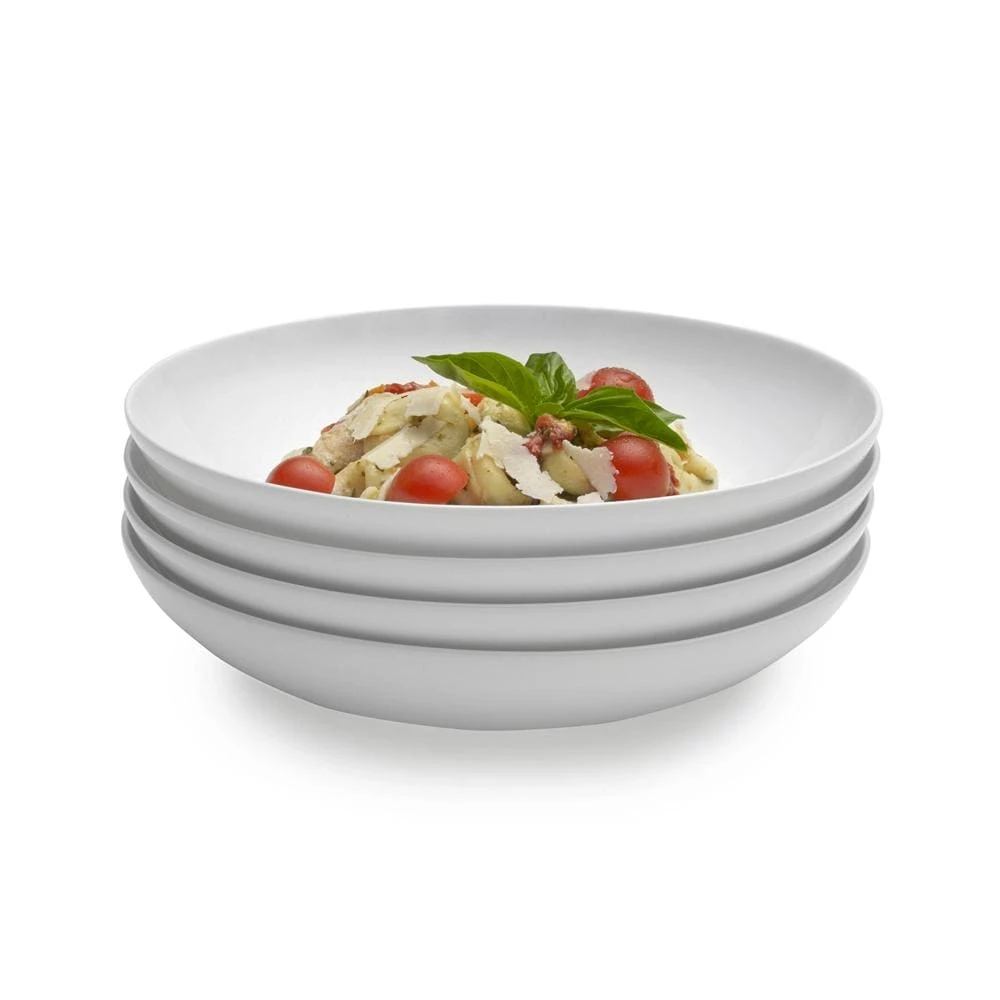 Made of high quality bone china this collection is casual and stylish and great for everyday use. Chip resistant, microwave, dishwasher, freezer and oven safe. Set of 4 Pasta Bowls, each measures 9 inch diameter and hold 37 ounces.