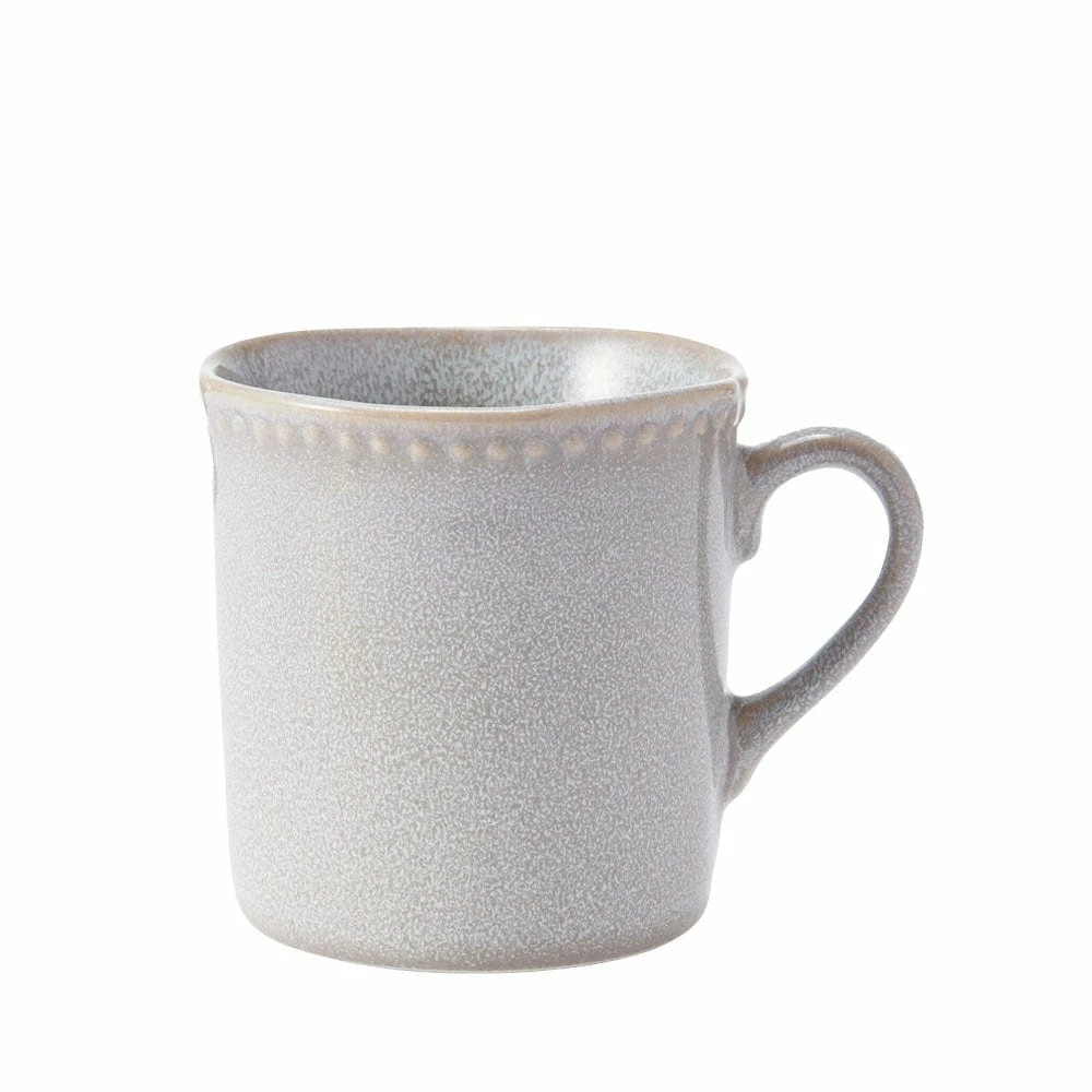 This Mikasa Elle Grey Dinnerware Set features a slight organic shape with delicately embossed beaded detailing around the rim, and a light gray reactive glaze finish. Due to the nature and hand-crafted qualities of reactive glaze, no two pieces are exactly alike and will exhibit unique variations in color and pattern. Product may slightly differ from image shown.
