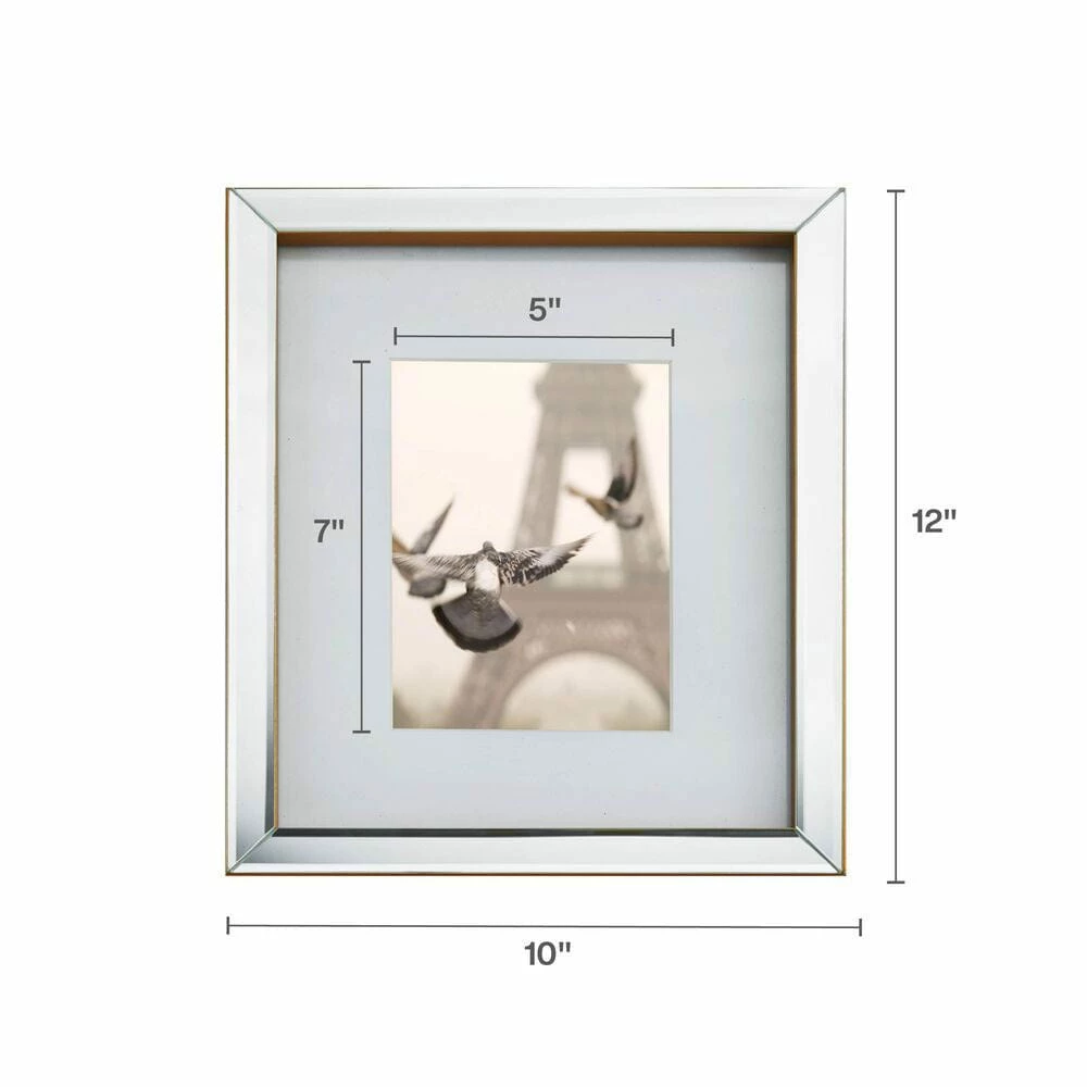 Display cherished memories with the Mikasa Mirrored Gold Frame. This stylish frame holds your favorite 5 x 7 inch photo. The two-toned edges feature reflective silver and lustrous gold details that bring a touch of elegance to your photo display. Simply hang vertically or horizontally in your living room, bedroom, or bathroom using the d-ring hangers. Makes a great gift for friends and family. Measures 10.18”L x 0.87”W x 12.18”H.