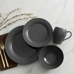 New 😉 Mikasa® Swirl Graphite 16 Piece Dinnerware Set, Service for 4 🥰