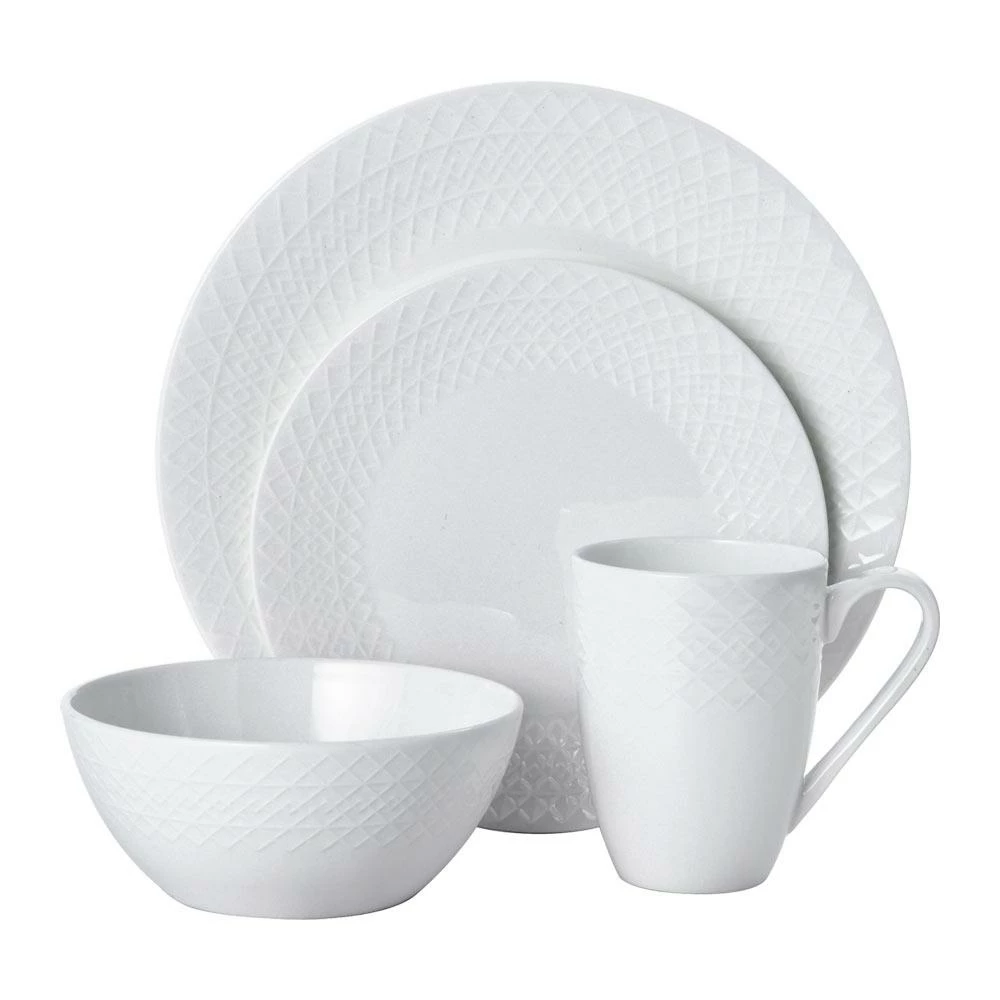Perfect for both casual entertaining and everyday dining. Crafted of high quality bone china. 16 piece dinnerware set, service for four, includes (4) each: 10-1/2 inch dinner plate, 8-1/4 inch salad plate, 6 inch cereal bowl and 13 ounce mug. Microwave and dishwasher safe.