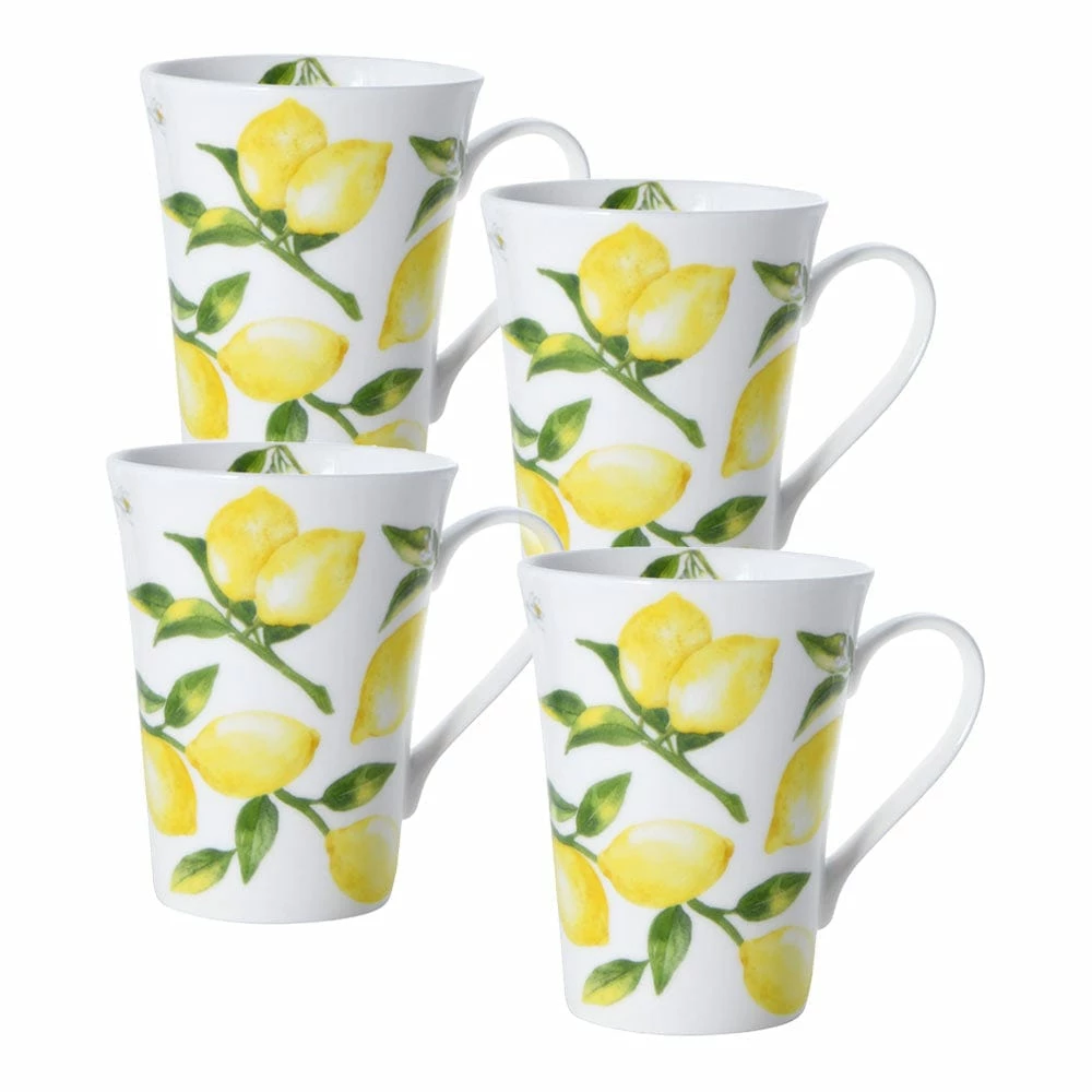 This Lemons Set of 4 Mugs feature a beautiful watercolor lemon design on a crisp white background, and will bring the sunny color of a citrus orchard to your tabletop.