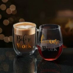 Coupon 🌟 Mikasa® Double Wall Mug and Stemless Wine Glass Set of 2, Rise and Unwind Sentiments 🌟