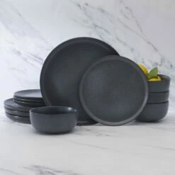 Deals ⌛ Mikasa® Miller Black 12 Piece Dinnerware Set, Service for 4 ⌛