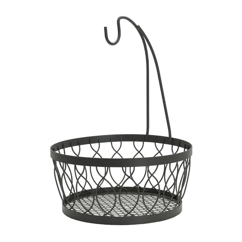 From our Gourmet Basics by Mikasa collection, this Rustic Farmstand Fruit Basket with Banana Hook features a banana hanger and basket in one convenient design. The basket is sized to hold an ample amount of produce and allows for air to naturally ripen fruit. Crafted from high grade carbon structural steel for long lasting beauty even under rigorous use. Wipe clean with damp cloth. Fruit basket measures 11 inch diameter x 15 inch high.