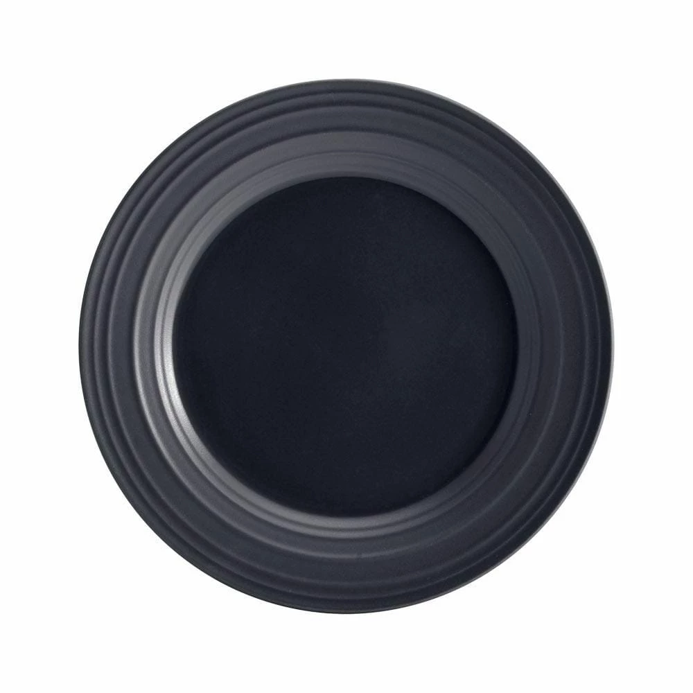 Swirl Graphite combines an organic shape, embossed texture, and dual, matte and shiny finish, for a truly modern look. The graphite color will add a bold touch, and a striking statement with its versatile style. Crafted of ironstone with a pin-firing technique which allows the entire bottom of the plate to be glazed, including the base. This process significantly reduces water absorption and increases chip resistance. 4 piece place setting includes an 11 inch dinner plate, 8-1/2 inch salad plate, 6-3/4 inch (24 ounce) soup cereal bowl and 18 ounce mug. Microwave and dishwasher safe.