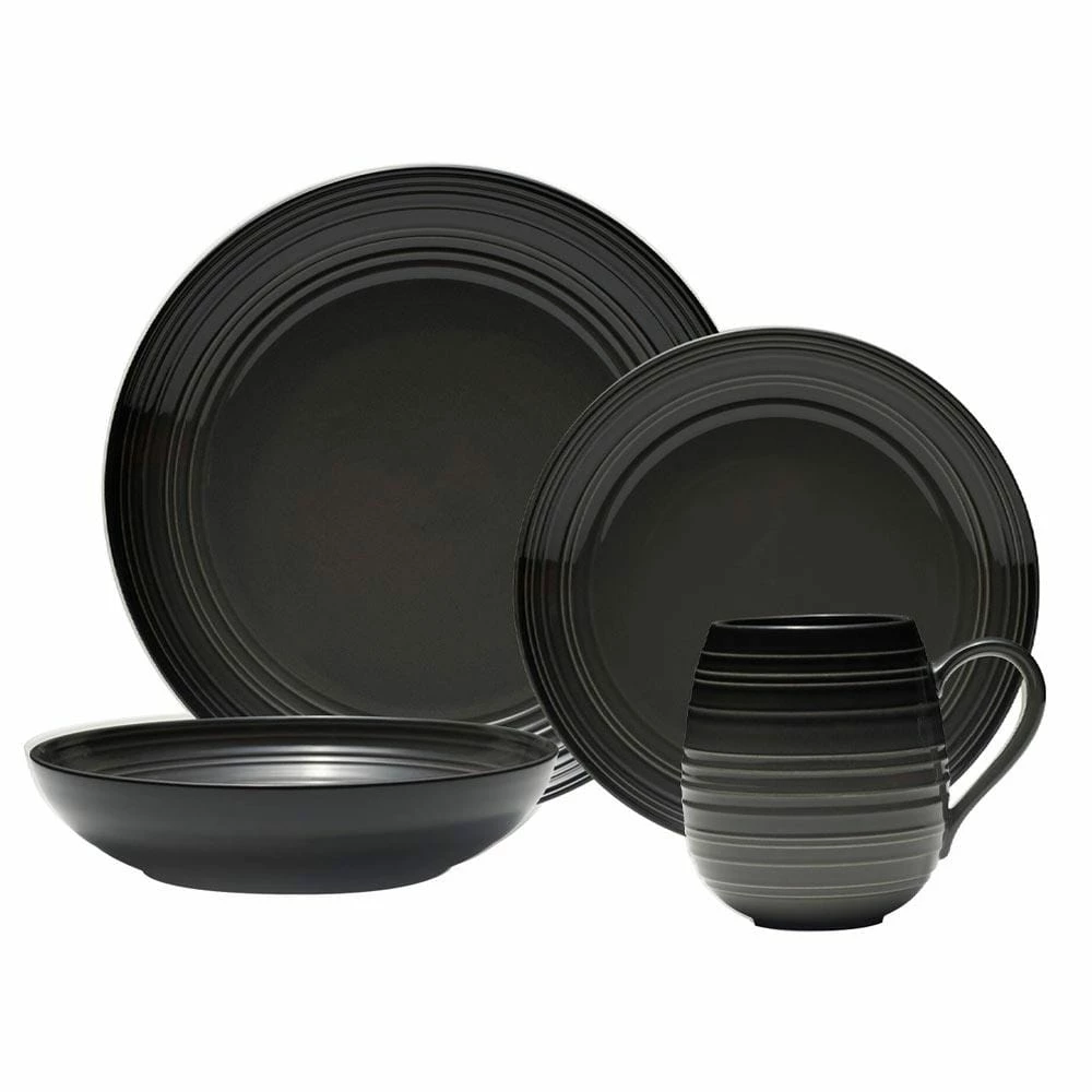 Best Pirce 🧨 Mikasa® Swirl Black Coupe with Graphite Ombre Accent 4 Piece Place Setting 🔔