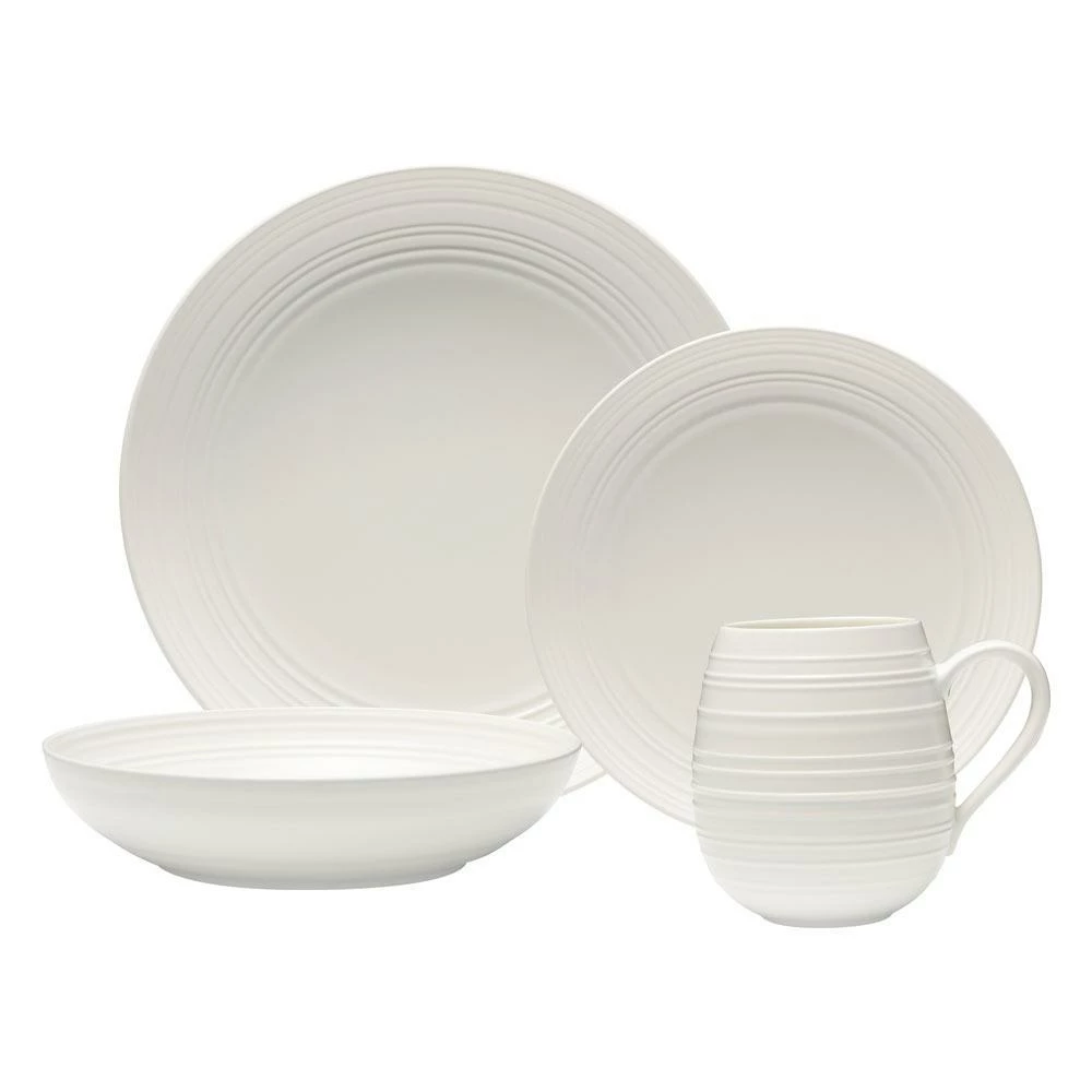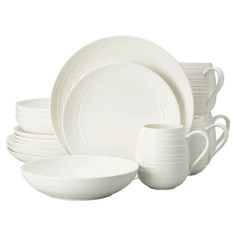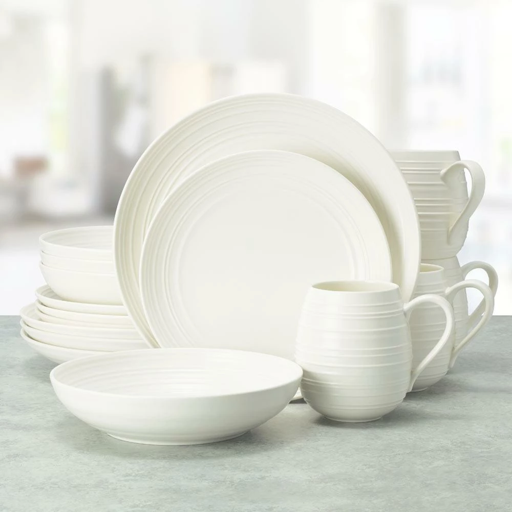 Promo 🔥 Mikasa® Swirl White Coupe 16 Piece Dinnerware Set, Service for 4 ⌛