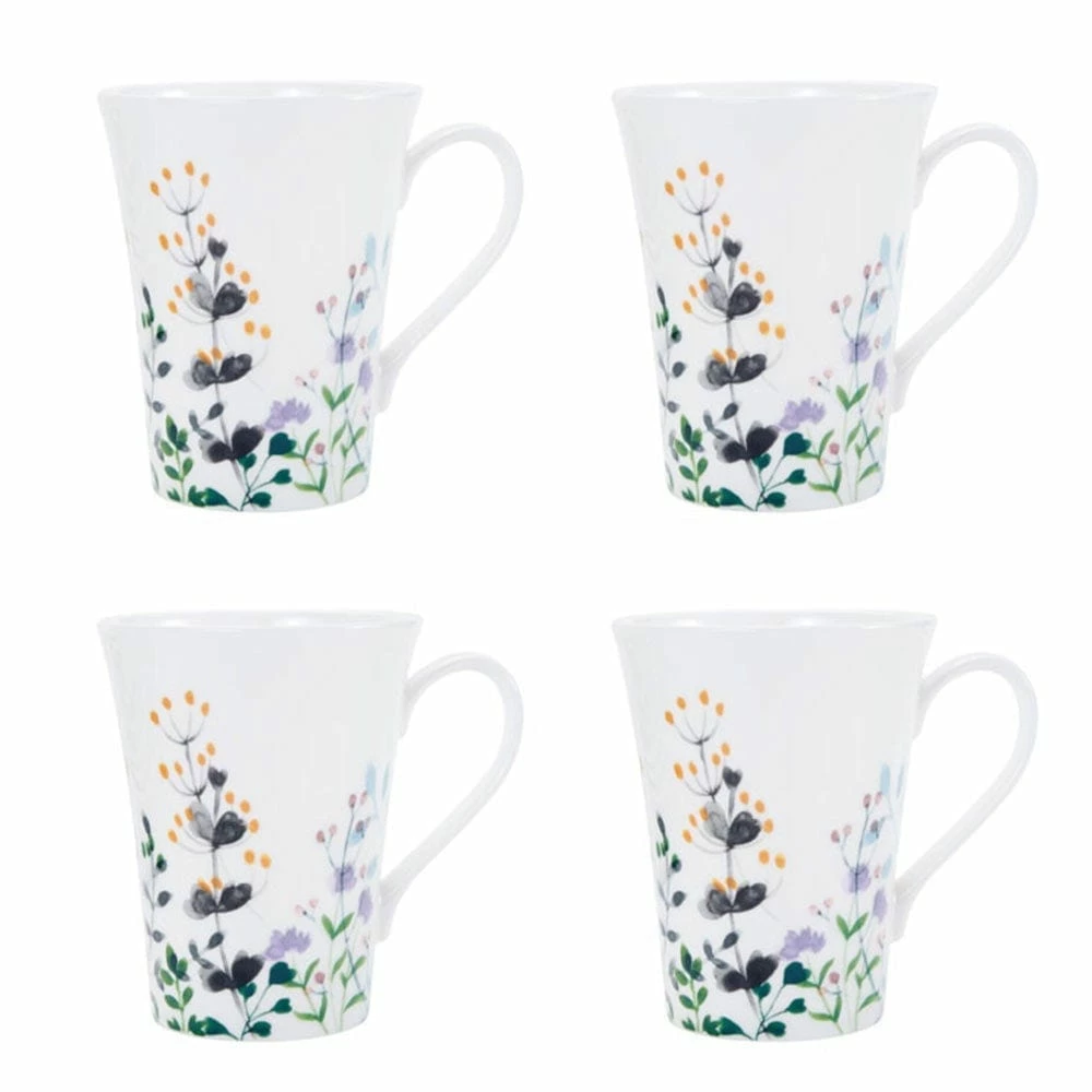This Mikasa Tivoli Garden Set of 4 Mugs feature a white background, with delicate, colorful buds sprouting around the bottom rim, and will make every meal feel like a walk through a fresh spring meadow.
