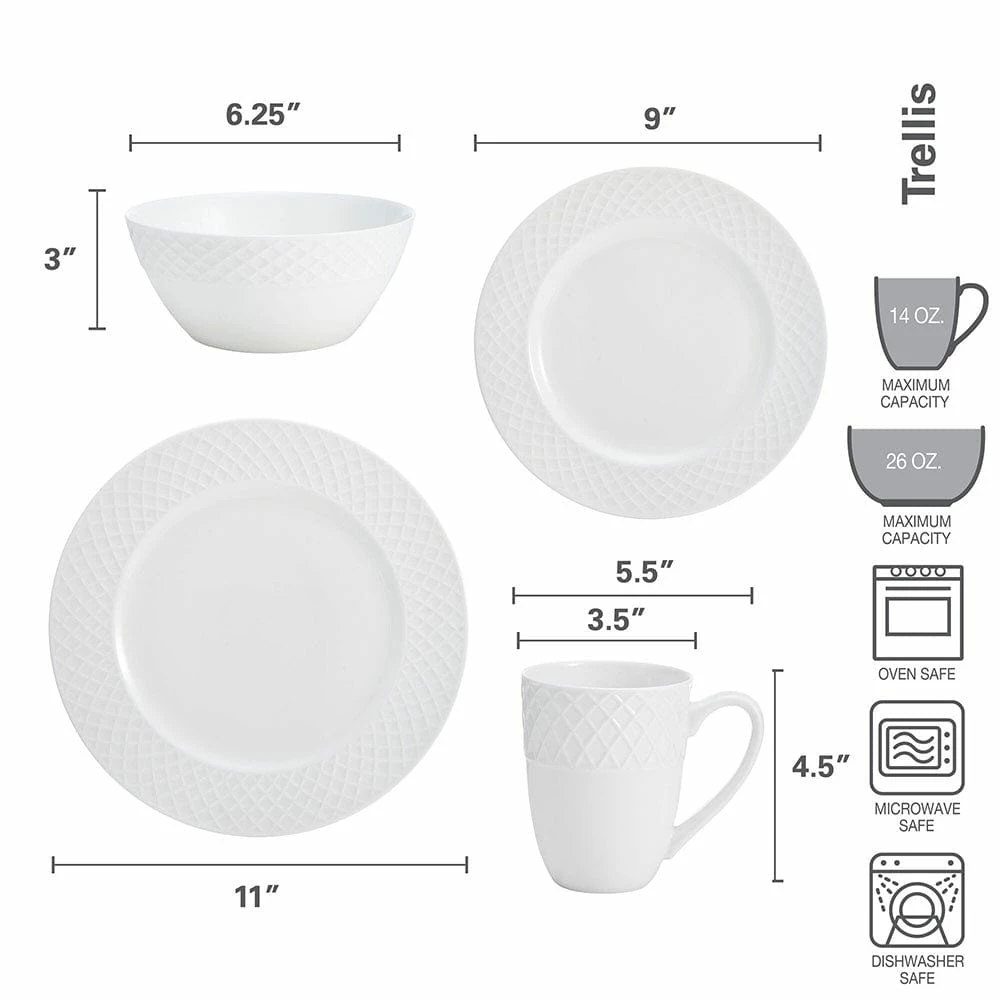 Cheap 😀 Mikasa® Trellis White 36 Piece Dinnerware Set, Service for 6 😀