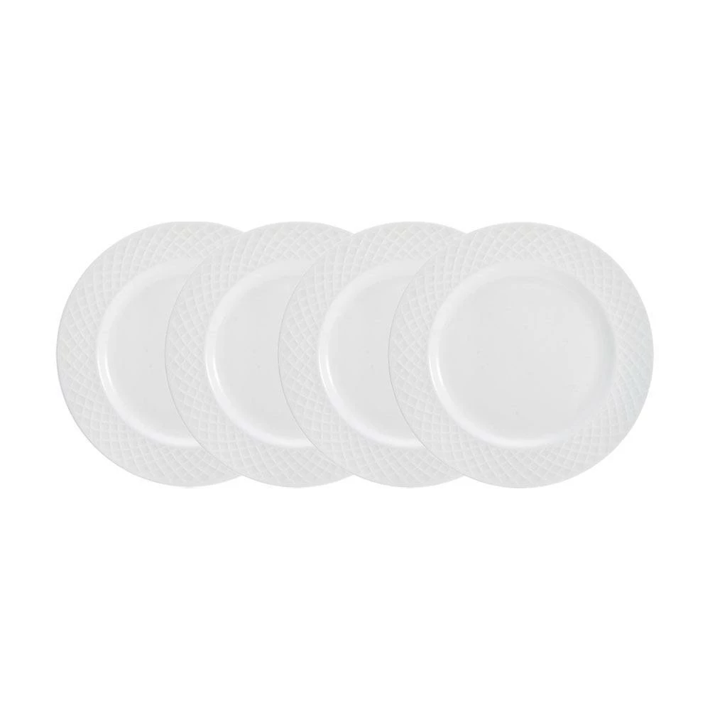 This Mikasa Trellis White Set of 4 Appetizer Plates feature a contemporary, criss-cross line design framing each piece, creating eye-catching depth and movement on your tabletop. This casual and stylish set is perfect for everyday use.