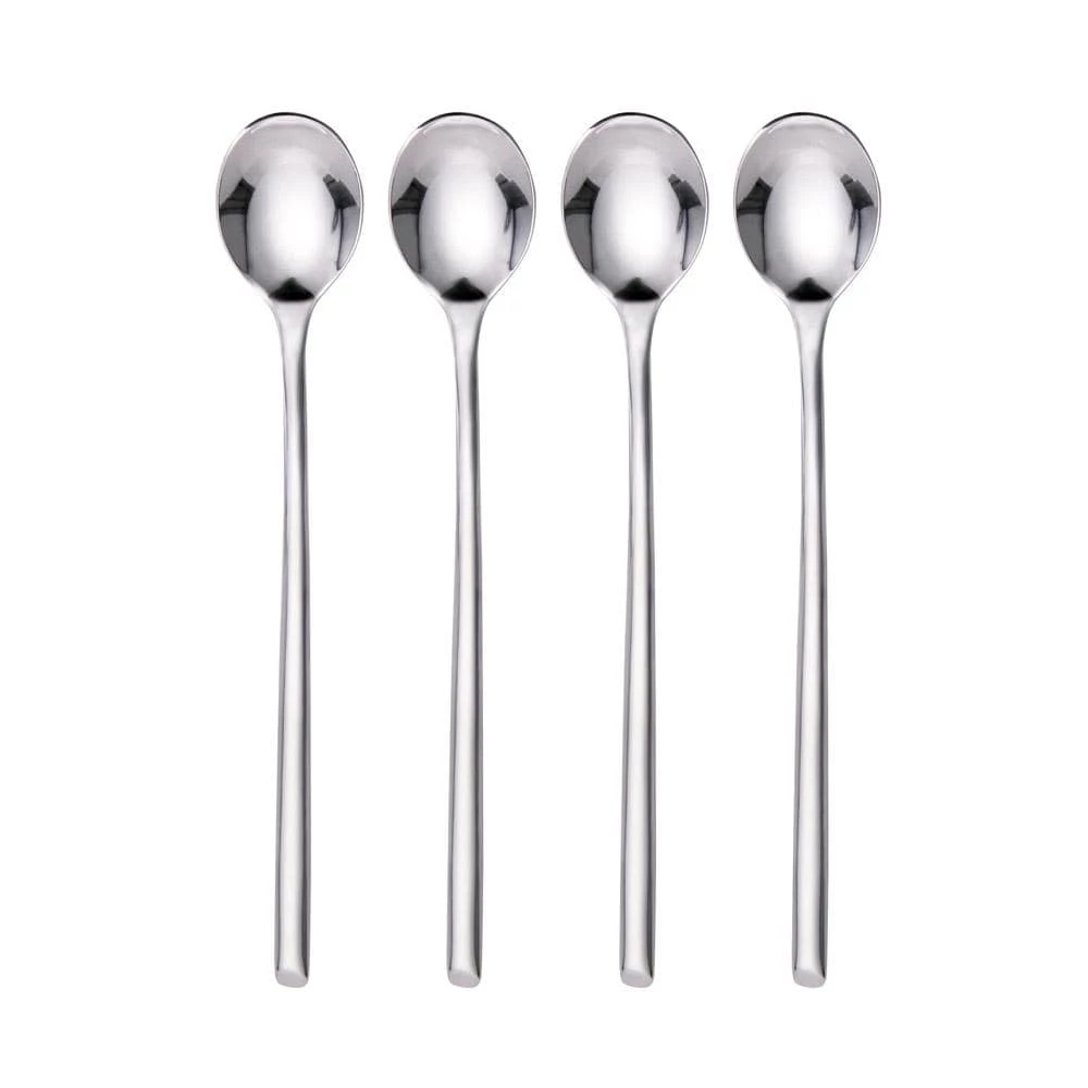 Towle Living Wave forged flatware is crafted from superior 18/0 stainless steel, with a mirror-finish. Features a contemporary rounded handle with bias cut base giving your table setting a modern look. These extra-long iced beverage spoons will reach deep into frosty cold glasses of iced tea, lemonade and more, thoroughly stirring the contents for better flavor. Set of 4 beverage spoons, each measures 7-1/2 inches long.