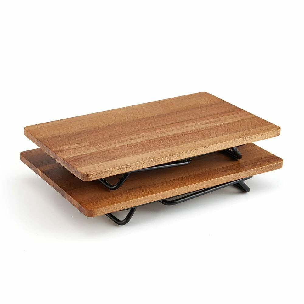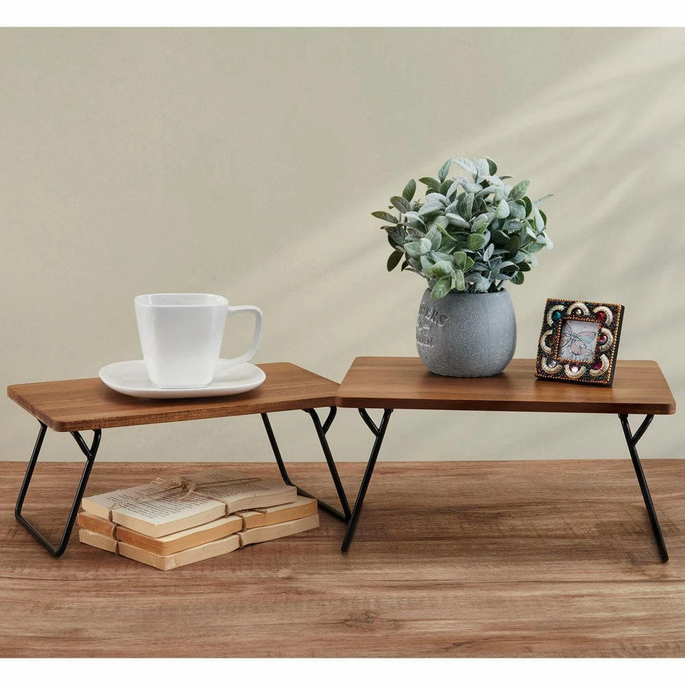 This Gourmet Basics Woodford Set of 2 Shelf Organization Trays features natural, wooden platforms, with stunning, black wire-stands, and will add a modern, yet elegant look to your home. Use both shelves to keep items neat and easily accessible in cabinets, on counters, and under sinks.